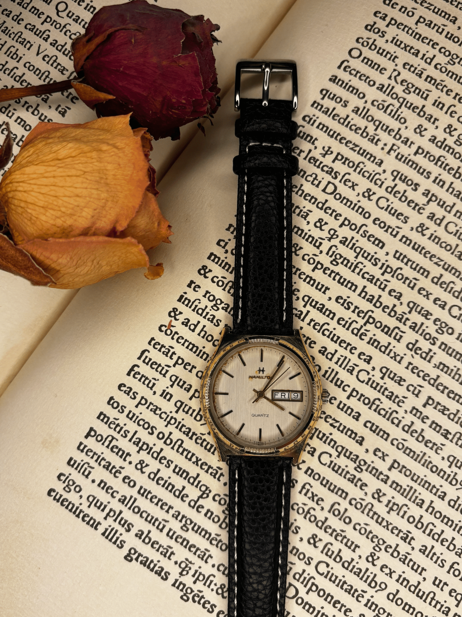 With its day and date function, this Hamilton reflects that same spirit: practical, reliable, understated. Time has gently touched its case, leaving the natural patina visible in the photographs — entirely expected in a vintage piece of this era. Naturally, it is offered exactly as shown, with only these aesthetic signs acknowledged.